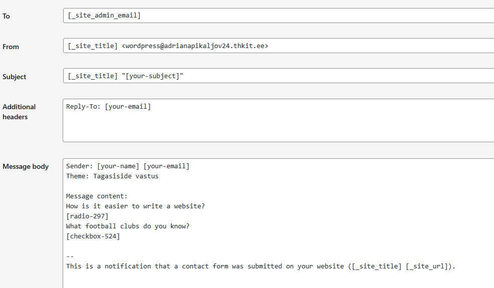 We use the contact form 7 plugin to create the feedback form