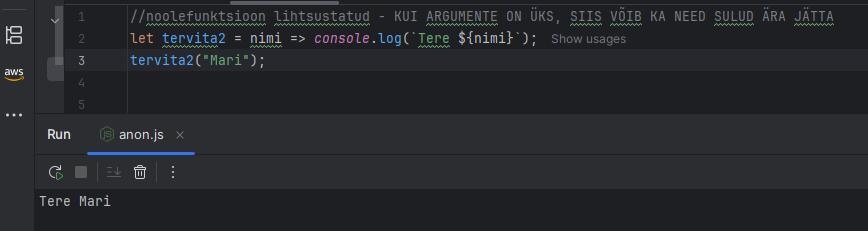 Kui funktsiooni kehas on ainult üks avaldus, siis saame isegi loogelised sulud {} ära jätta.