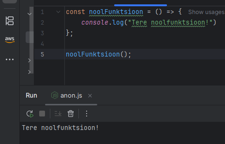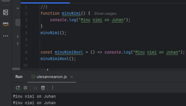 const minuNimiNool = () => console.log("Minu nimi on Juhan");