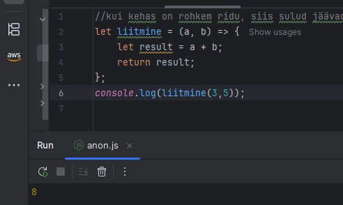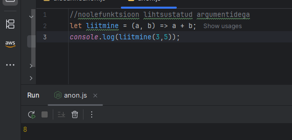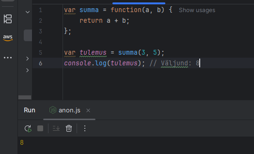 Siin on näide anonüümsest funktsioonist argumentide kasutamisel, mis tagastab summa kahe arvu vahel