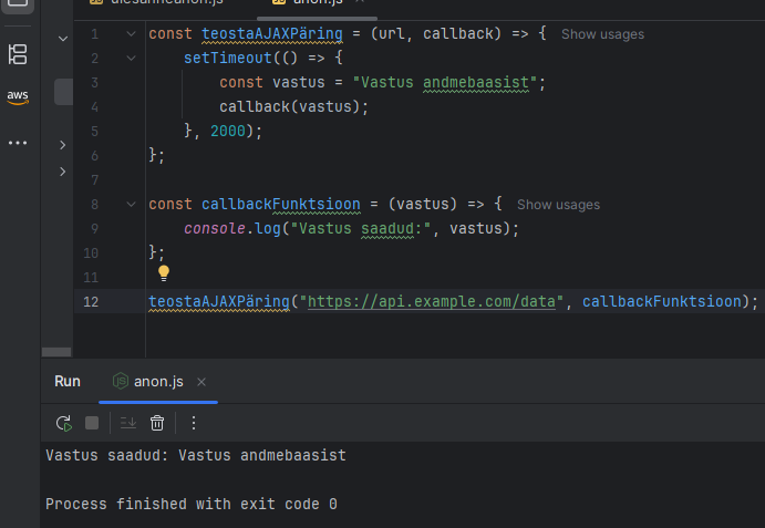 Näide lihtsast AJAX API päringust koos callback-funktsiooniga, kasutades noolefunktsiooni