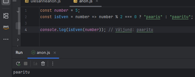 Eriti läheb huvitavamaks, kui lisada mitu lühendatud koodi kokku. Näiteks funktsioon, mis leiab kas arv on paaris või paaritu