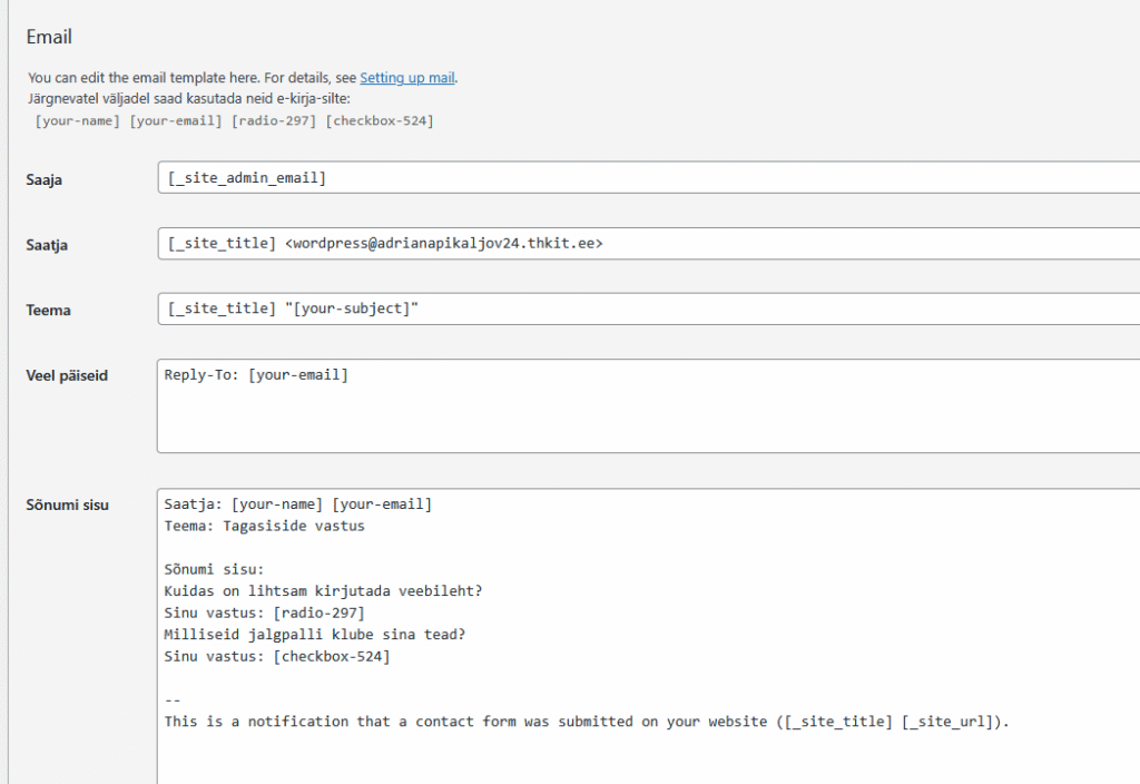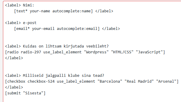 Tagasiside vormi loomiseks kasutame plugin contact form 7